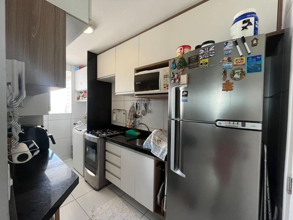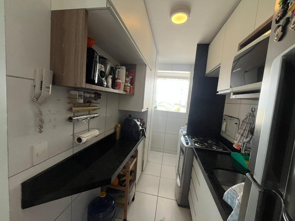 Móveis planejados na cozinha, sala, banheiros e área de serviço.